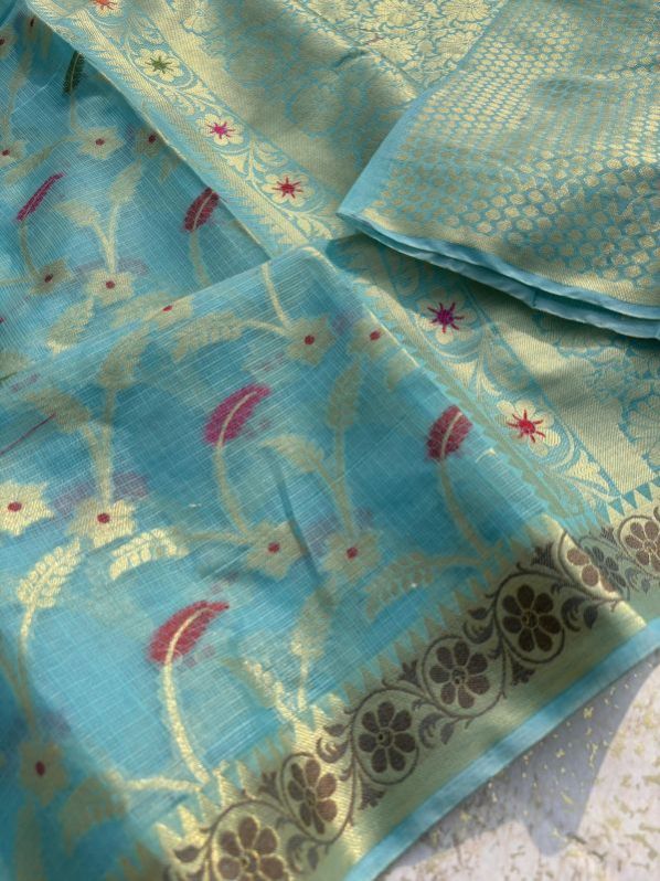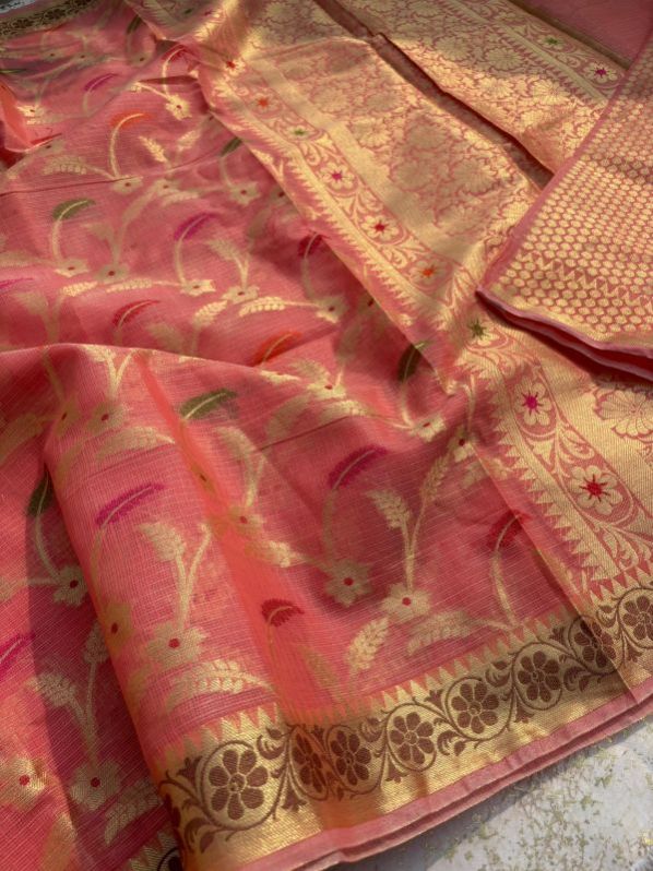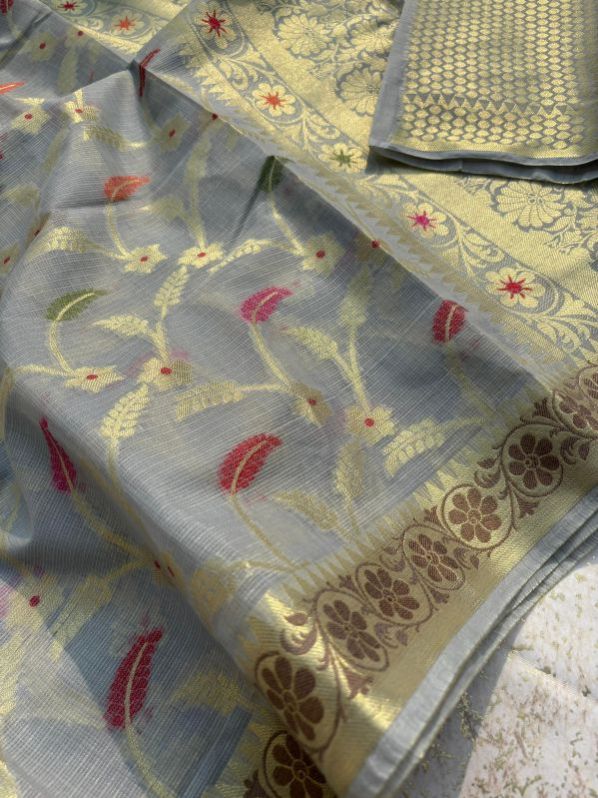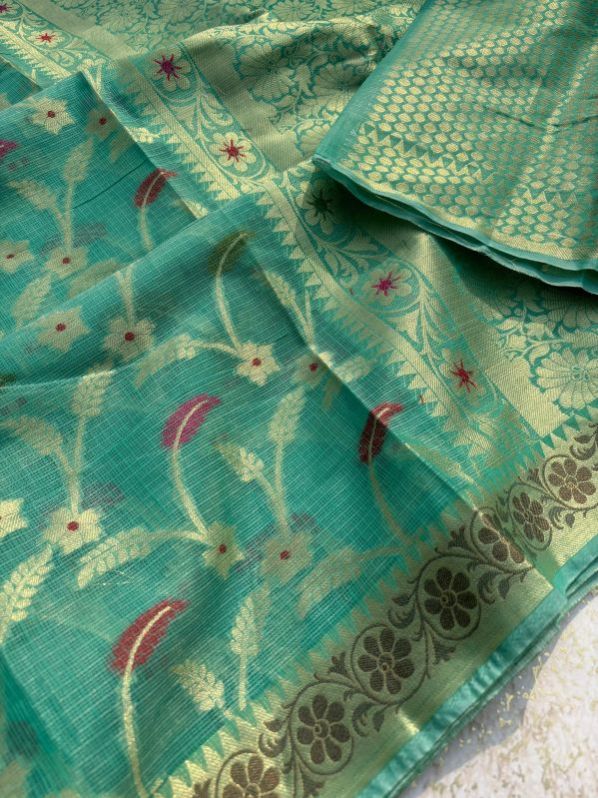 Looking for banarasi semi Kota check saree full body flower meena zari jall wiving small border and rich pallu broket blouse 5 colour available